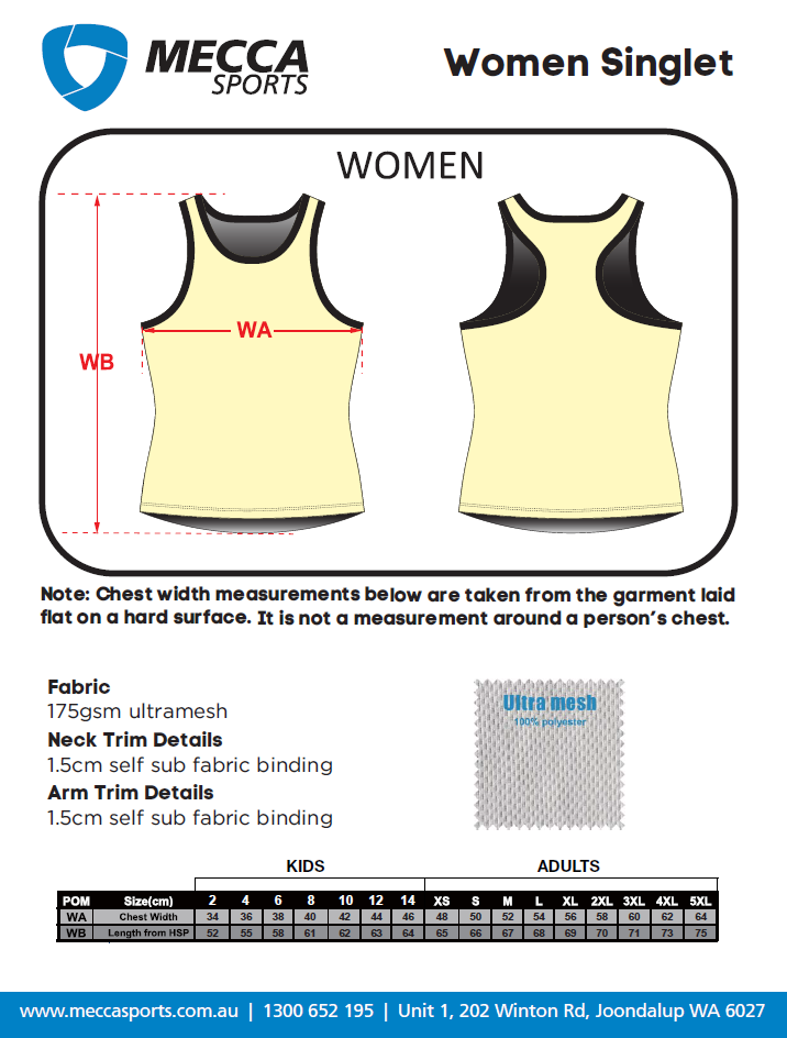 The term ‘Mecca Sports’ or ‘us’ or ‘we’ refers to the owner of the website whose registered office is Unit 1, 202 Winton Rd, JOONDALUP, WA, 6027. Our ABN is 77 162 174 245. The term ‘you’ refers to the user or viewer of our website.